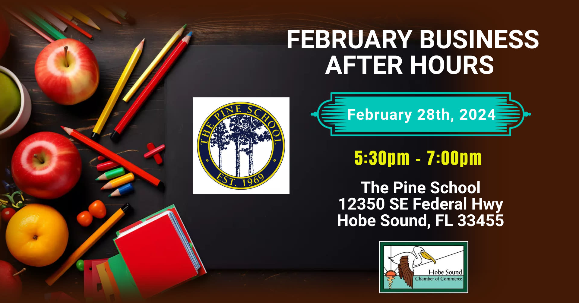 Join us for our February Business After Hours at The Pine School on February 28th. The Pine School was created in 1969 for the purpose of bringing academic rigor to K-12 students of the Treasure Coast. Gather for a fun night enjoying lite bites, cocktails and networking with fellow chamber members. What better way to to check out this beautiful campus along with their celebrated educators and staff.