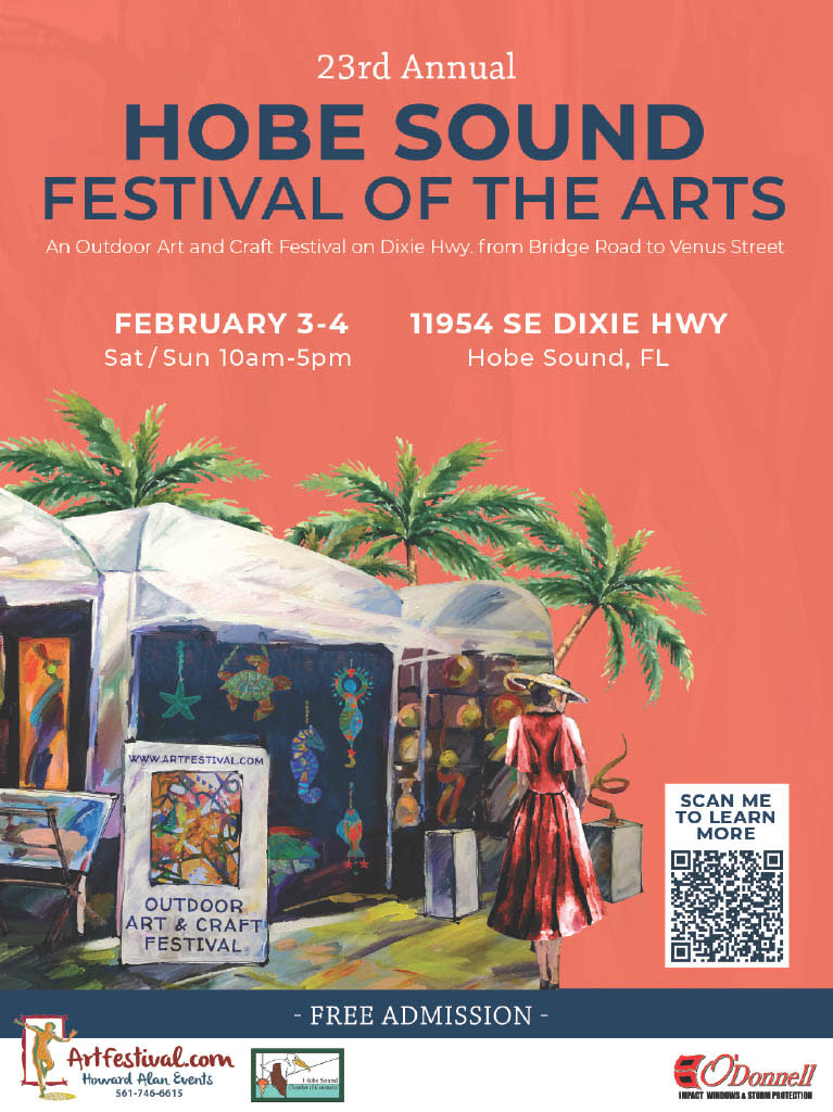 The Hobe Sound Festival of the Arts is produced by Howard Alan Events in cooperation with the Hobe Sound Chamber of Commerce. Presented by O'Donnell Impact Windows & Storm Protection Thousands of visitors come to Hobe Sound on the first weekend in February every year to experience this amazing juried works of well over 100 highly skilled artists. In addition, the show includes Business Booths and a variety of food vendors. FREE Parking at The Pine School with Trolley service to the event. The Pine School, 12350 SE Federal Highway, Hobe Sound, FL 33455 There is no fee to attend. Just come and enjoy an amazing community event!Images