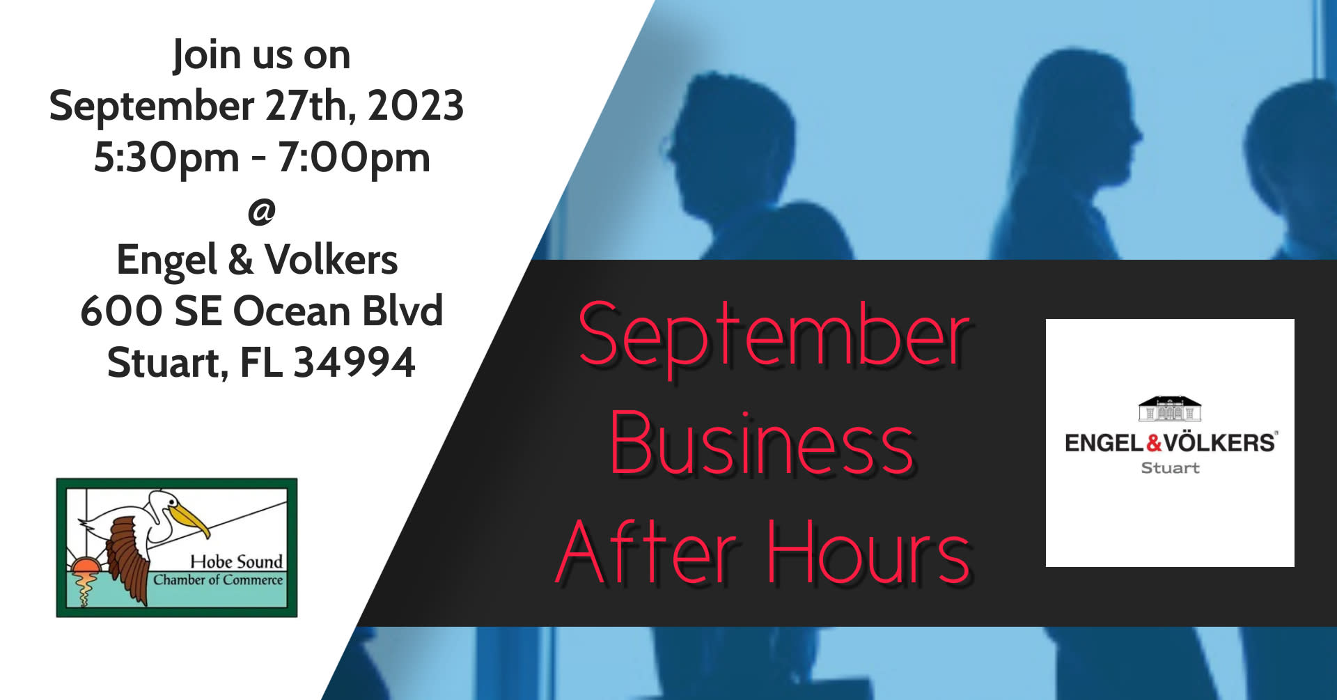 Join us for our July Business After Hours at the beautiful new location of Engel and Volkers of Stuart. Let’s celebrate their new location on SE Ocean Blvd with a fun night of networking while enjoying delicious appetizers and drinks. Come by and catch up with fellow chamber members and check out what Engel and Volkers Stuart has to offer. Registration is required. No RefundsImages