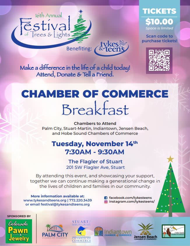 This isn't just a breakfast; it's an opportunity to be part of something truly special. By participating, you're not just enjoying a delicious meal amongst friends and collogues, you're supporting mental health services for children across the Treasure Coast. Your attendance directly contributes to making a positive impact on the lives of these children and their families, fostering a generational change in our community. Let's unite and make this annual tradition the most significant one yet! Together, we can spread the joy of the holiday season while making a difference in the lives of those who need it most. 🎄 Thank you to our event sponsor, Colorado Pawn & Jewelry , for your generous support. It's because of sponsors like them that we can continue this vital work. Get your tickets now {https://bit.ly/3sgLQSq} and let's kickstart the holiday season in a giving light❣Images